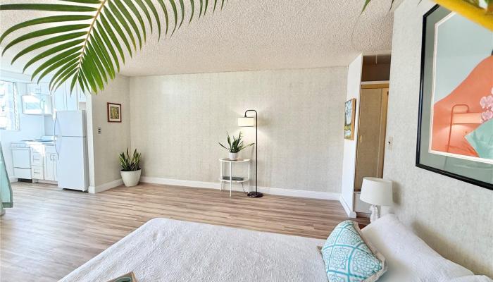 747 Amana Street unit 1418 is a condo in the Pacific Grand building located in Honolulu, HI. This is a condo in the Holiday Mart neighborhood. This apartment has 401 sqft interior space with city, sunset views. Unit #1418 is located on floor number 14 and the property condition is average.