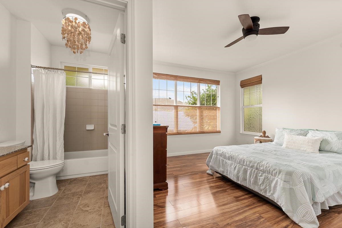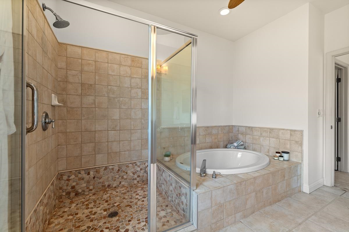 Escape to paradise and discover this exquisite single-level 3 bed, 3 bath home with professionally landscaped yard and a detached 1 bed, 1 bath accessory dwelling unit (ohana). The updated main home features an open floorplan with vaulted ceilings, central air conditioning, beautiful stone flooring, custom finishes, solar panels for budget-friendly living and new interior paint throughout. The smart floorplan seamlessly connects indoor living spaces to outdoor spacious covered lanais to amplify your relaxation and enjoyment. The backyard oasis was cultivated to ensure privacy from neighbors and features lush tropical landscaping, fruit-bearing trees and a rejuvenating hot tub. The detached ohana provides a versatile space, ideal for rental income, a home office, a private gym or to accommodate your guests. Fencing between the main home and ohana along with separate entries offer complete privacy and separation. 203 Kuli Puu is nestled within the coveted Ke Alii Kai community and is moments away from pristine sandy beaches and provides easy access to South Maui's renowned dining, shopping, parks and exciting nightlife. Note: published gross living area does not include the 474 sq ft of the detached ohana.