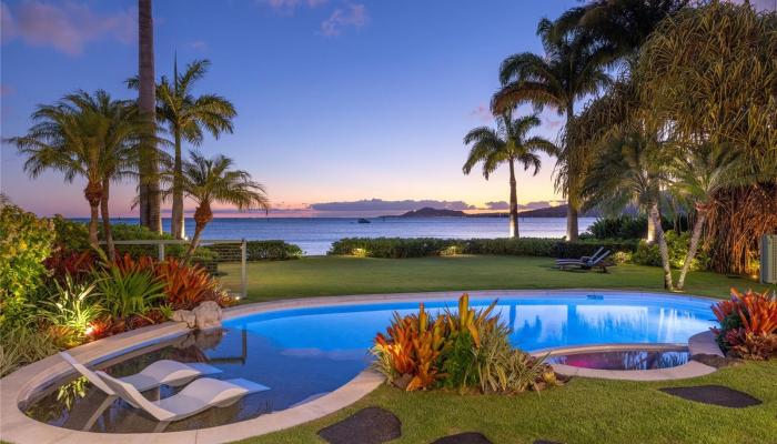 Experience island luxury, a modern oceanfront estate on one of Oahu’s most prestigious coastlines. Walls of glass capture sweeping views of Diamond Head, the Pacific, & Honolulu’s city lights. Interior Design by Cathy Lee Style, this 6,406 sq. ft. residence offers 5 bdrms, 5.5 bths, an office, & expansive living areas that seamlessly connect to a large covered lanai, perfect for both relaxed living & grand entertaining. Enjoy resort-style amenities w/a sparkling pool, spa, and a sandy beachfront with 72 Linear feet of ocean frontage. The chef’s kitchen features Sub-Zero, Wolf, & Bosch appliances, a 12-ft island, custom cabinetry, handmade Italian glass tiles, & a walk-in pantry. Highlights include Fleetwood doors, Pella windows, a 1,700-bottle wine cellar, elevator, gym, home office, & smart-home controls. The primary suite offers a private lanai, 2 DREAM closets, & a spa-inspired bath with ocean views. Outdoors, enjoy a 10-ft built-in kitchen w/BBQ, a 3-car garage with gated driveway, & professionally landscaped grounds w/retractable pool gate for security. Fully furnished & meticulously curated, this home is a rare opportunity to own a turnkey beachfront sanctuary in Portlock.